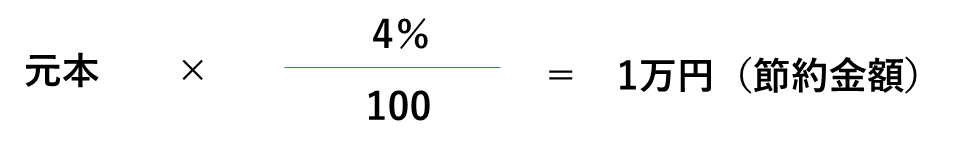 これを利回り逆算法に当てはめると、年利4%で利益(節約金額)が1万円でした。